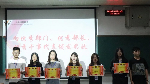 第十九届学生会优秀部门、优秀部长、优秀干事代表颁发奖状并合影留念,向51大赛