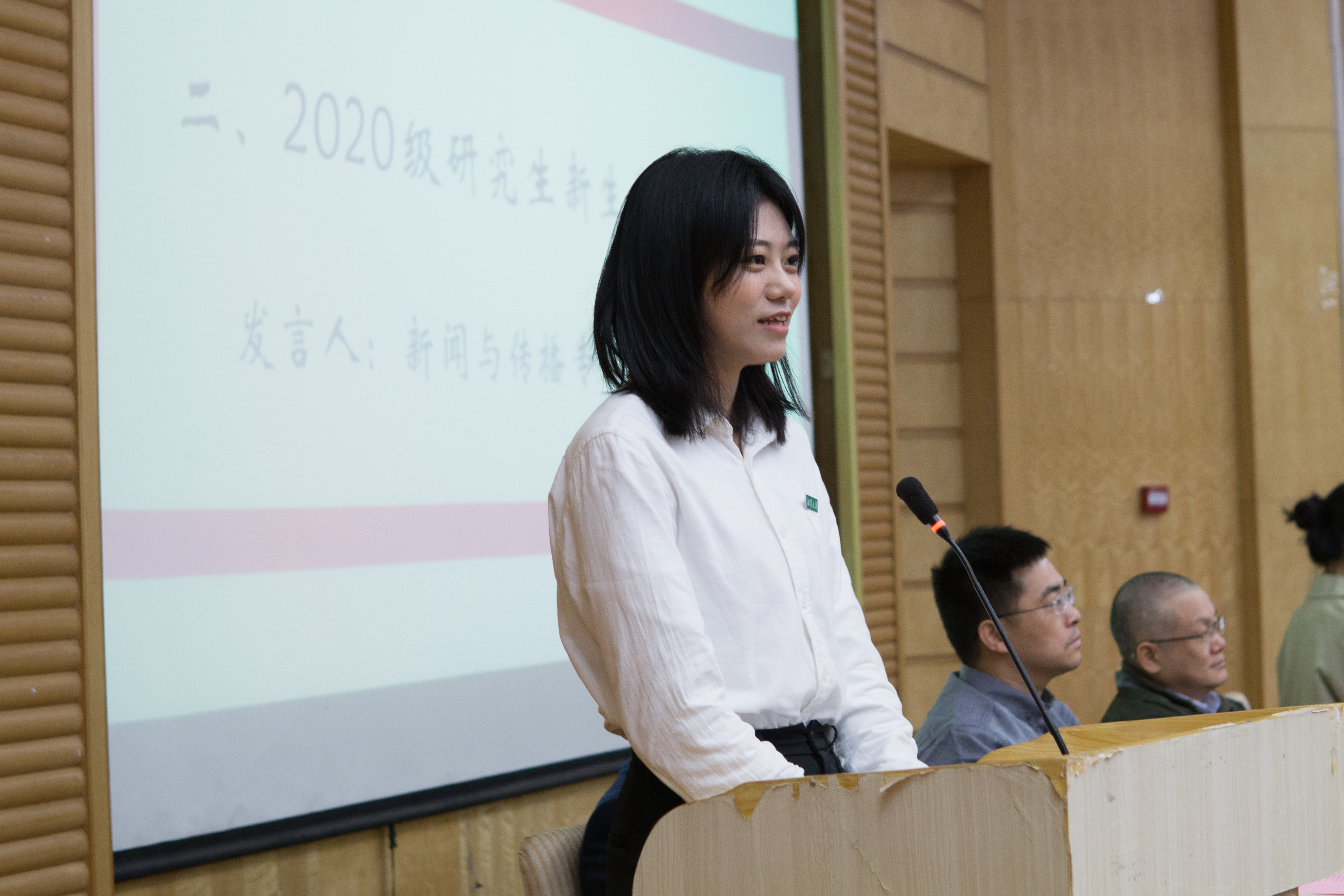 新生代表新闻与传播专业贾冬锐用生动活泼的话语感谢了湘大师生的付出。她认为成为研究生后,应该要潜心学问,要学会知行合一、要勇于承担使命。“师傅领进门,修行在个人”,贾冬锐鼓励大家要好好利用读研时光,扩充自己的知识储备,强化自身的专业素养,在心系湘大心系祖国的同时放眼世界,成为时代中激流勇进的拼搏者。