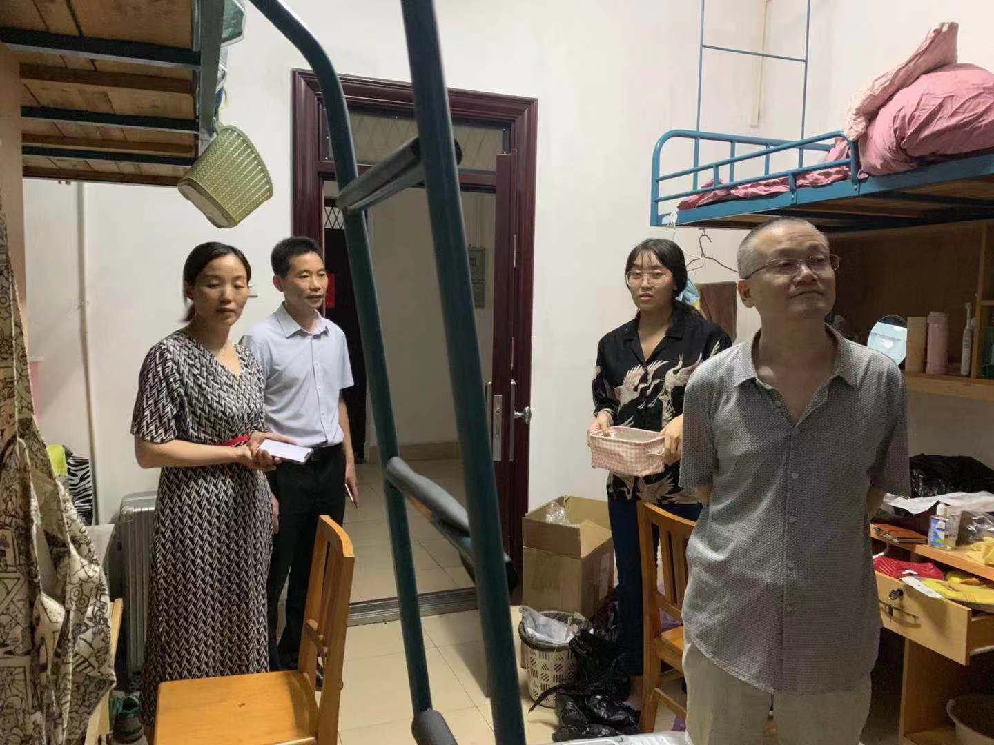 研究生新生的住宿和学习情况,帮助新生尽早适应新学校和新变化,8月29日晚7点,院长李剑波教授、院党委书记赵猛老师以及季多武副院长、周鹏飞副书记、田华副院长、研工办林瑜老师与院研究生会、研究生团总支的学生干部一道,走访了2019级研究生新生宿舍,看望并慰问新生。