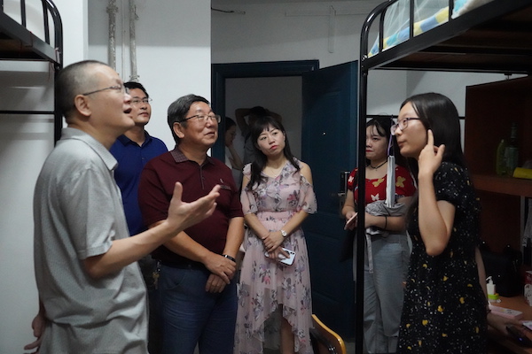 走访过程中,院领导、老师与新生家长们就宿舍条件、适应情况、困难问题等进行交流沟通。在注意到大多寝室都紧闭门窗时,院领导和老师们提醒新生夏季炎热,开空调纳凉的同时更要注意通风问题。在与家长聊到孩子的适应性和依赖性问题时,领导、老师们耐心开导家长,鼓励家长们放宽心,让孩子多独立,从而学会独立。