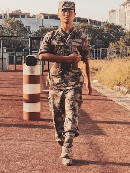 现已大三的马中浩连长就读于碧泉书院国际事务与国际关系专业,今年是他第三次参与到军训之中。第一次他是一名稚嫩的新生,在烈日的炽热中完成了十八岁的洗礼;这一次他是九连的连长,在三田的黄沙里为一九级新生增添浓墨重彩的一页。