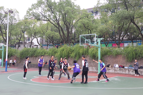 裁判一声哨响,比赛正式开始。双方队员都立即进入比赛状态,19新闻二班17号选手姜淑彦先声夺人,冲破层层防线,成功投进本场第一球,为新闻二班取得开门红。随后新闻二班47号吴昊男与17号姜淑彦默契配合,为新闻二班再进三球,球场上掌声雷动。19中文二班97号沈彦洲积极防守,奈何双拳难敌四手,17号姜淑彦势如破竹,再拿两球。第一场新闻二班以28比0暂时领先。