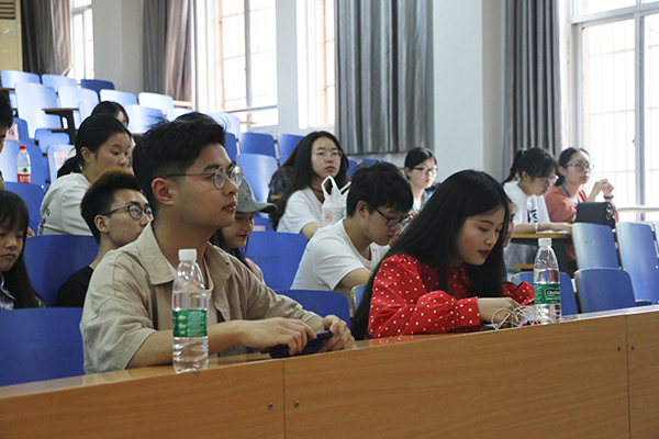 主持人石浪进行开场致辞,宣布本次报告会正式开始。随后由芙蓉学子获奖者王叶进行事迹分享,王叶学姐从个人经历出发,与校园现状相结合,以鲜明的事例与幽默的语言向大家生动地讲述了自己大学四年的心路历程。从大一刚踏入校门时的心高气傲到后面竞选班长遭受打击的茫然无措,害怕挂科而打算复读,再到最后逆流而上的顽强拼搏,王叶学姐用自身的经历诠释了自强不息。紧接着王叶学姐讲起了自己实习时的趣事以及实习教会她的道理,通过自己的经历告诉大家实习的重要,并呼吁大家早日开始实习,这不仅能为今后步入社会打下牢固的基础,也能积累下一份宝贵的人生经验,更能在简历上增添一分光彩。最后,王叶学姐分享了她保研的经历,为正处于迷茫时期的同学们点亮了一盏引路灯。演讲之后,台下热烈的掌声经久不息。