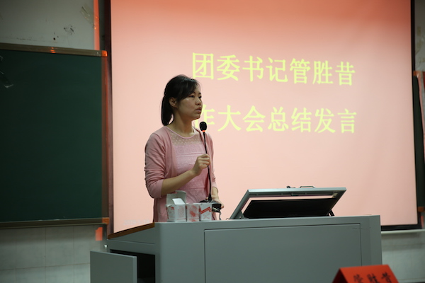 团委书记管胜昔老师做大会总结发言。管老师与大家分享了三个关键词:感恩,将感恩自己与感恩他人相结合;成长,将自我成长和组织成长相统一;奉献,将奉献他人与奉献组织相结合。她勉励同学们:学会感恩,努力成长,积极奉献。