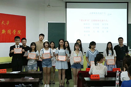全体师生观看志愿服务活动视频后,大会进入到颁奖阶段。会上分别表彰了各个活动中的先进个人以及集体,并颁发了奖状。随后殷佳媛同学作为志愿服务先进个人代表上台发言,与大家分享了自己在志愿实践中的感想和收获。青年志愿者实践部门成员郭彤旭发言,表达了对志愿服务的美好祝愿。