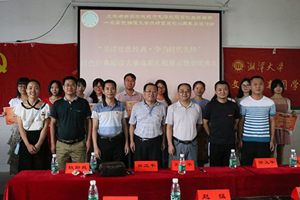 在文科楼204教室组织举办了“品读红色经典,争当时代先锋”首届红色经典阅读大赛成果汇报暨表彰活动,青年学子汇报学习成果,畅谈学习体会,以别开生面的方式共同庆祝建党九十七周年。副校长刘建平出席活动并讲话,公共管理学院党委副书记谷立平、商学院党委副书记资义平、土木工程与力学学院党委副书记欧阳巍、党政办秘书科科长孟召然与三位学生代表共同担任大赛评委,51大赛