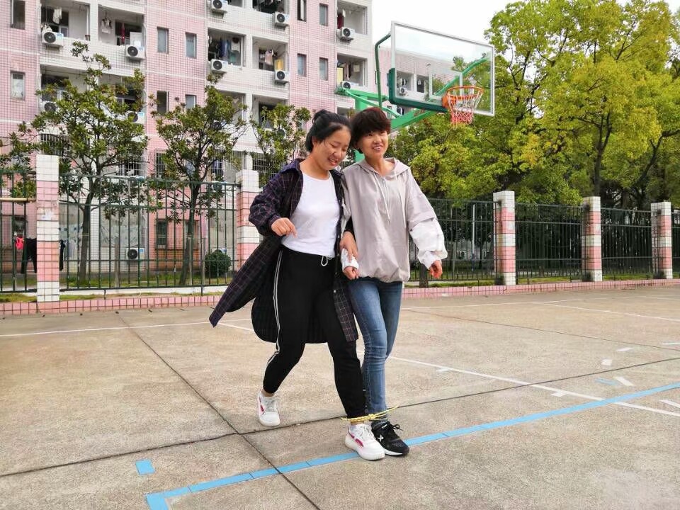 第二个环节眼前的黑不是黑较之第一环节难度系数明显提高了,每个班分成五组,每组三名成员,其中包括一名指挥员,其余两名成员则需要蒙住眼睛以两人三足的形势在指挥员的引导下跨越障碍到达终点。两人三足本就限制了同学们的行动,蒙眼更是大大增加了跨越障碍的难度。但是同学们并没有因此放弃,各班同学在对指挥员的充分信任下,默契十足地完成了比赛。这个环节考验的不仅是被蒙眼的同学的勇气,更是同学们之间的信任。此环节成功促使同学们之间更亲密、更信任彼此。