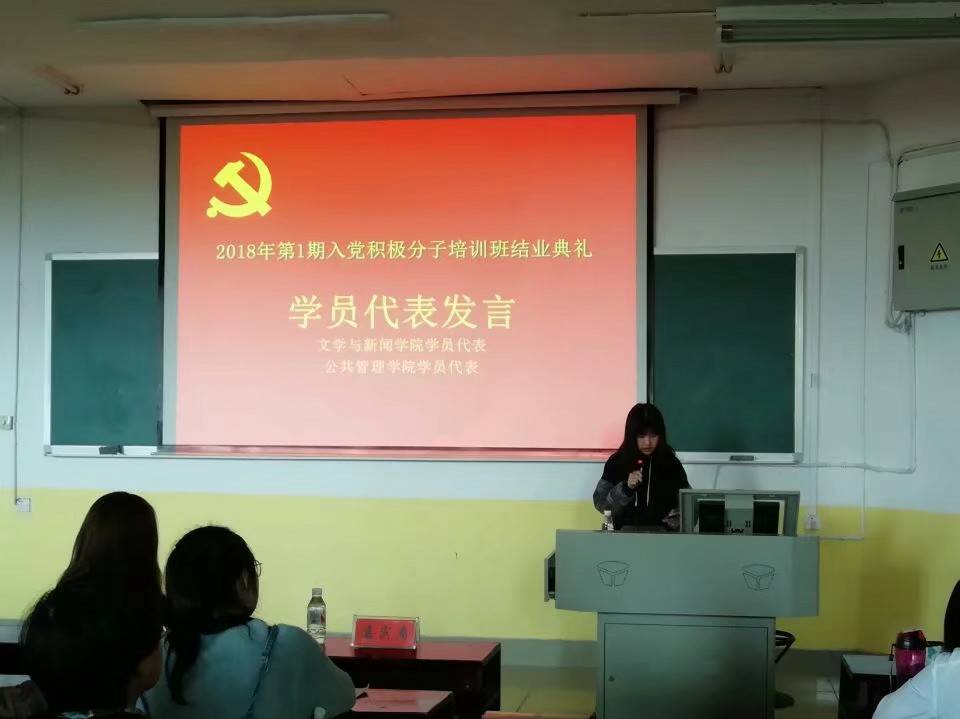 在专题讲座结束后,2018年第一期入党积极分子培训班结业典礼开始。大会第一项,学员代表发言,分别由51大赛