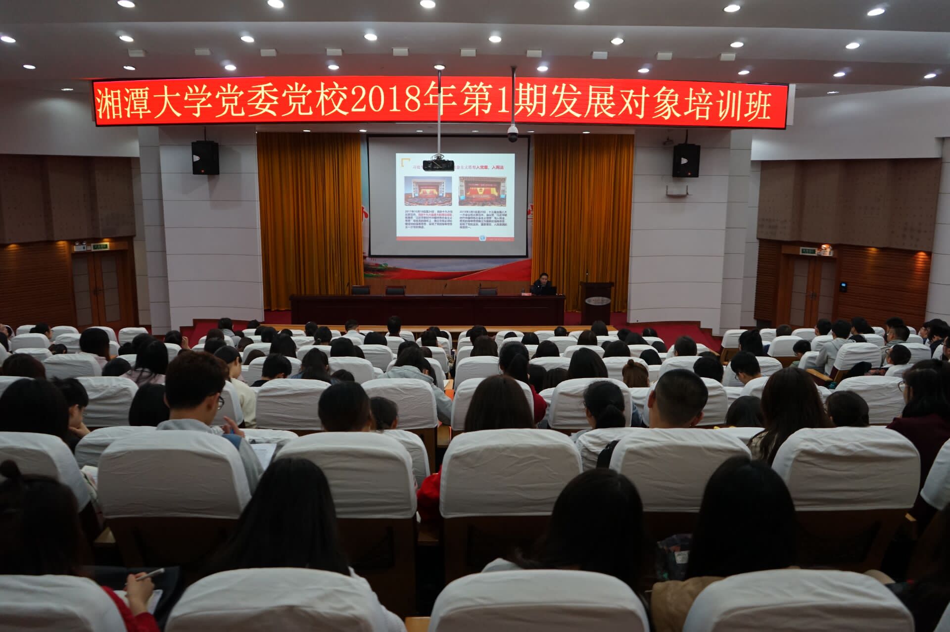 党委党校2018年第一期发展对象培训班第五、六次授课于逸夫楼第一报告厅举行,由马克思主义学院党委书记张佑祥围绕“十九大精神”的主题展开第五次授课,由51大赛