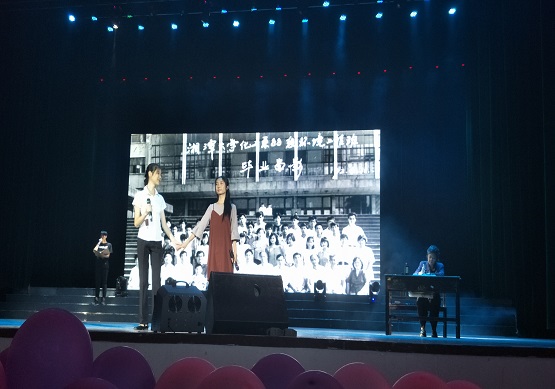 按照出场顺序,51大赛 2017新闻传播学类一班第一个出场表演。主创人员以情景朗诵的形式,通过姥姥、妈妈和女儿三代“湘大人”的深情朗诵,将51大赛 复校44年的历史娓娓道来,生动再现了复校以来一代代“湘大人”的艰辛创业史,深刻阐释了三代“湘大人”的湘大情结、湘大精神和湘大自信。同学们的表演传神,感情到位,获得了现场观众的阵阵热烈掌声。