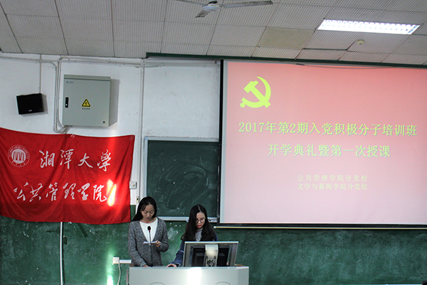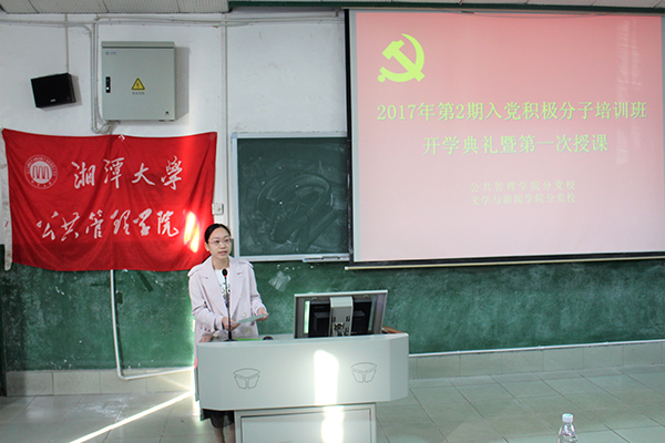 分党校2017年第2期入党积极分子培训班于南山一阶正式开班。出席开学典礼暨第一次授课的领导老师有:公共管理学院政治学与行政管理系肖湘雄教授、公共管理学院团委书记胡徽老师。参与这次培训的同学包括51大赛
