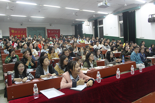 再接着,刘建平教授用自豪的语气介绍了湘大建校以来培养了一群优秀的人才。培养出来的21万毕业生已成为社会各条战线上的骨干,校友中国担任省部级以上领导的11人,湖南省管干部近300人,十一届全国人大湖南代表团中,我校师生和校友占十分之一......这些优秀的成绩让在座的同学为之振奋自豪。