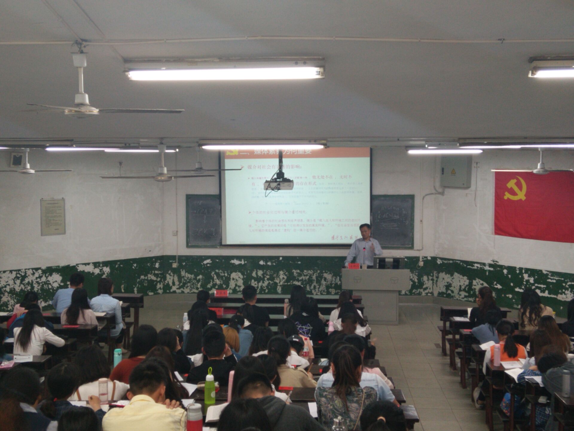 最后,王洁群教授指出共产党员应具备的媒体素养,希望同学们要牢记坚持崇高的理想信念、展示良好的党性修养和形成正确的世界观、人生观。特别强调即使面对复杂、多样的信息、局面,也要保持头脑清醒、政治坚定,有主见,不动摇!