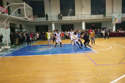 本次比赛结束之后,一场更加引人注目的比赛开始了————师生对抗赛,在双方的热身之后,比赛开始,16级的大一新生面对着前辈老师,不失尊敬却又能打出自己的精彩。开场后,双方互相进攻都未得分,面对僵局16级15号球员传给后场2号球员王玉胡,进球得分。而老师队深沉老练,经验丰富,不断进球。随着比赛的进行,双方对抗不断升级,罚球次数也不断增加,16级球员人人球技精湛,却疏于配合,而教师队伍配合默契,频频得分,6号球员投球精准,2号球员稳步上篮,最终教师队伍以47:23赢得比赛,但是这场比赛中输赢已经不再重要,他们打出的是浓浓的师生情!