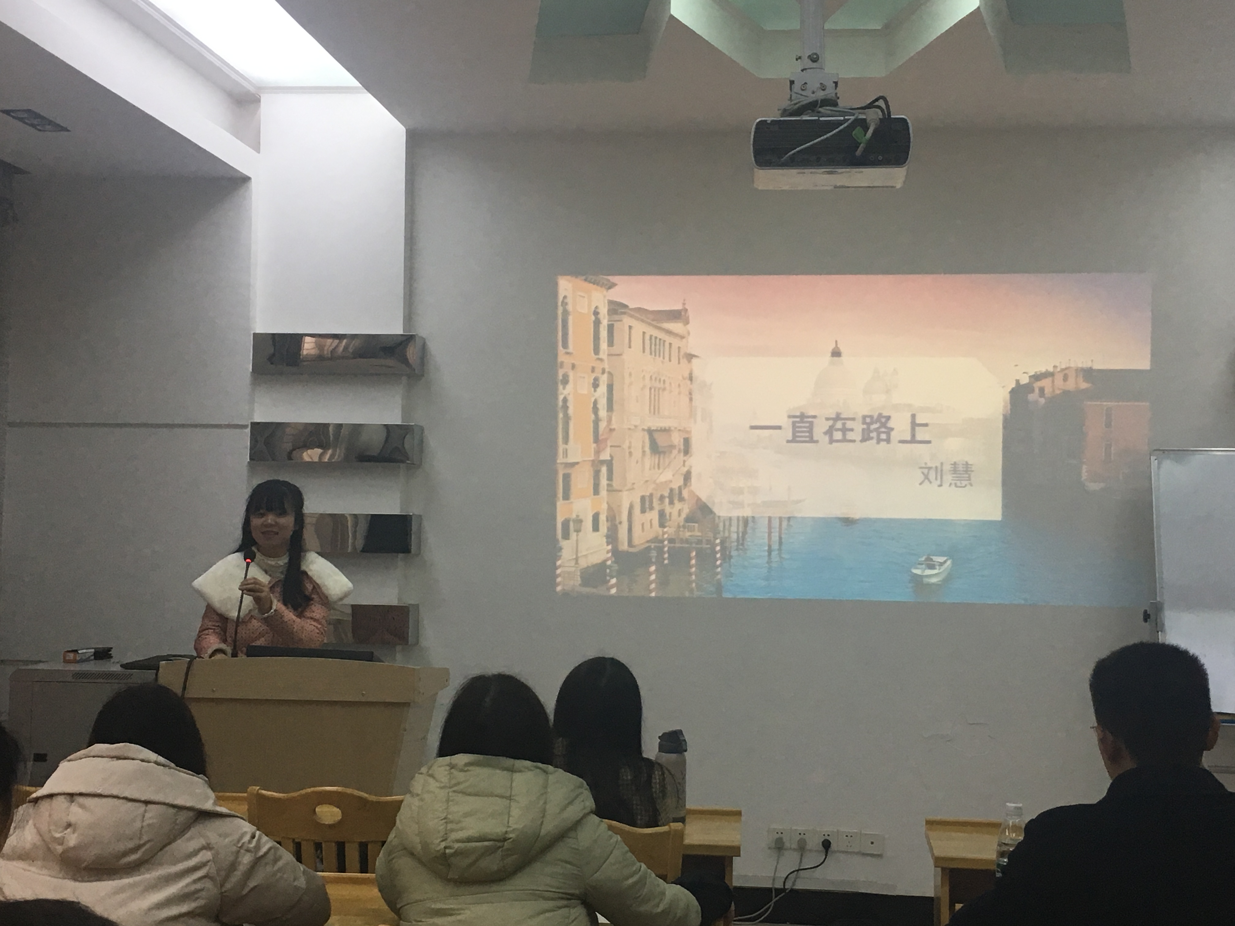 第二位上台的是外国语学院15级研究生刘慧。她向大家分享了自己暑期在渥太华游学的经历与心得,通过一张张精美而有趣的照片带领大家一起感受在外游学的成长与快乐。