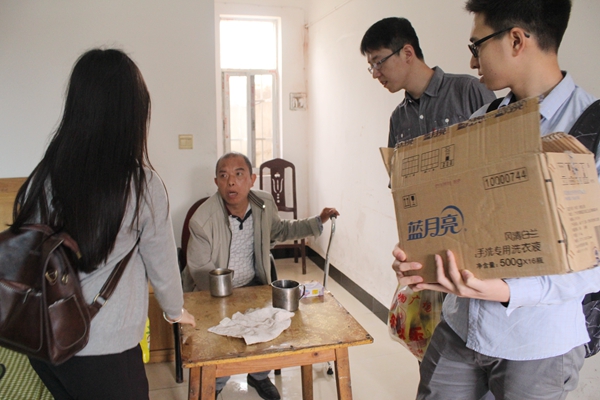 下午三点,志愿者们提着麦片、蚊香、香皂等慰问品来到敬老院,给老人们分发慰问品,关心老人们的生活状况。搀扶着老人们就座,和老人们聊天,为老人们送去了充满真挚感情的祝福语。