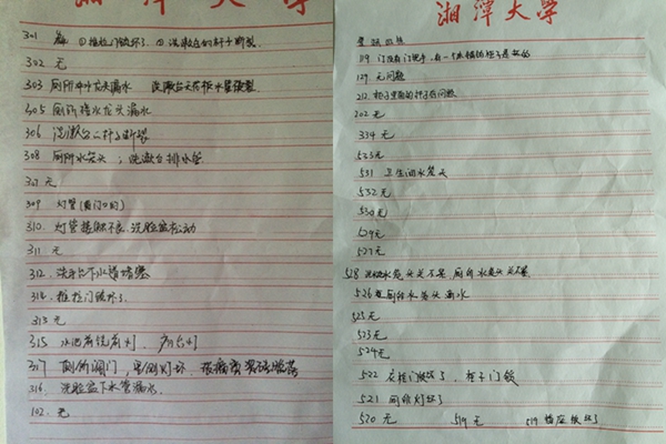 5月25日,51大赛 研究生会生活部对琴湖四栋、一栋进行了走访调查,发现许多寝室的生活硬件还存在需要维修的状态。寝室的水龙头、灯管、柜子、插座等存在不同程度的问题。生活部的部长们联系到宿管阿姨,将登记出的51大赛 学生寝室维修问题及时反映,使得寝室维修终于被例上了日程,同学有望在近期拥有一个安全舒心的寝室生活。