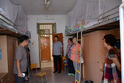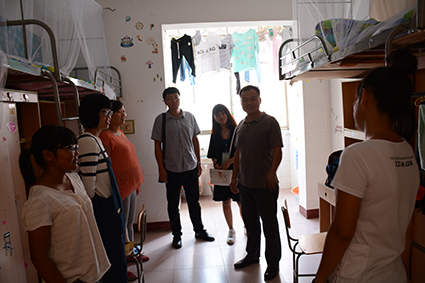 新生寝室察问新生寝室入住情况,并亲切看望新生及家长。
