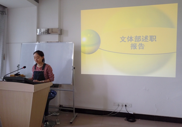 会上,各部门部长、副部长轮流上台述职演讲,他们对任职期间开展的工作、取得的成绩、获得的经验分别做以梳理,并总结了工作中存在的不足。随后,主席杨文博进行了总结发言,他希望在场的学生干部再接再厉,不断努力、开拓创新、锐意进取,加强团队建设和外部交流,积极开展各种活动,扩大学院影响力,尽职尽责,全心全意为同学们服务。