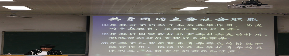 团委学生会组织部副部长王新娜为大家讲解了中国共青团的相关知识。第十五届团委学生会主席团成员以及106位同学参与了此次授课。