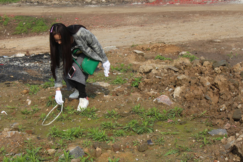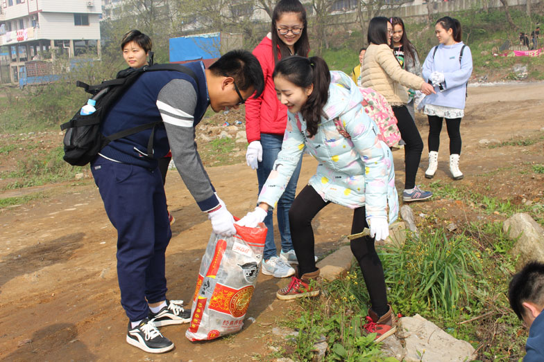 (图为志愿者们进行环保活动)