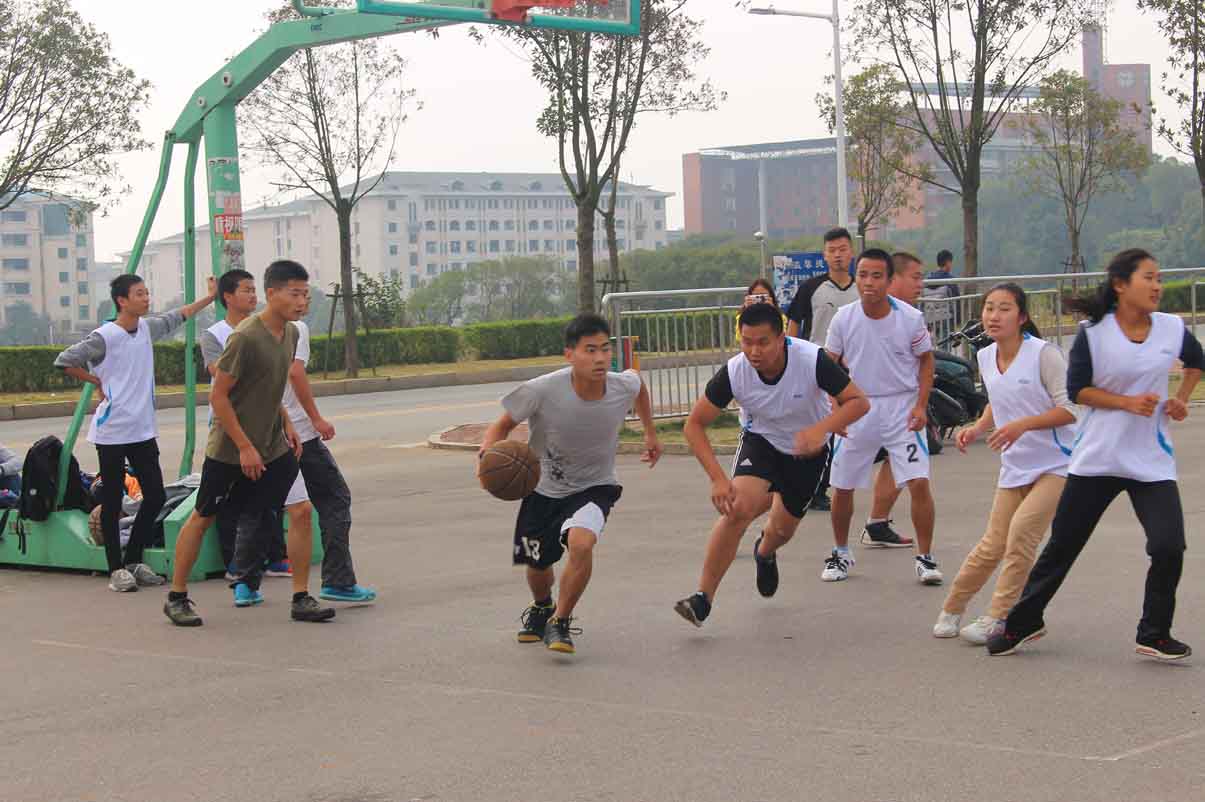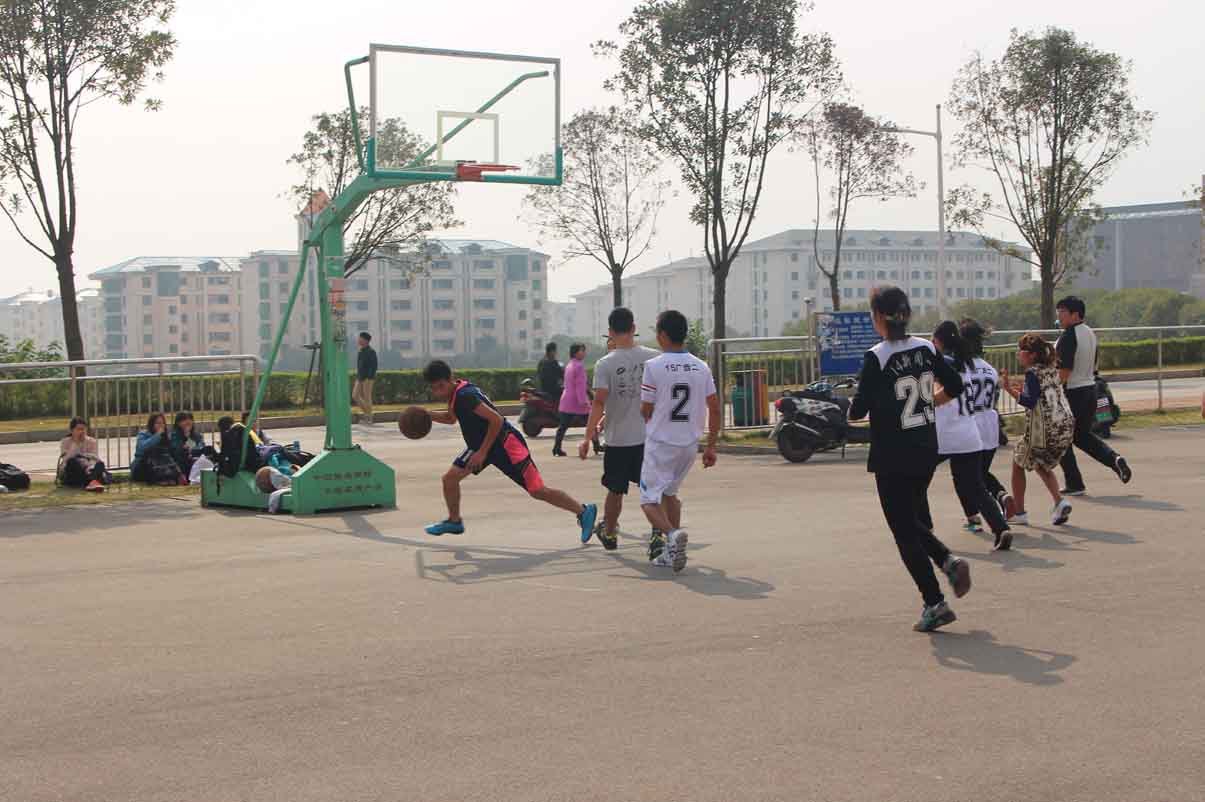 11月9日中午12:30,因阴雨天气而中断多日的“3+2”篮球赛重新开赛。15广告二班与14新闻一班球员展开了激烈角逐。最终14新闻一班以90:20战胜了15广告二班,赢得了本场比赛。
