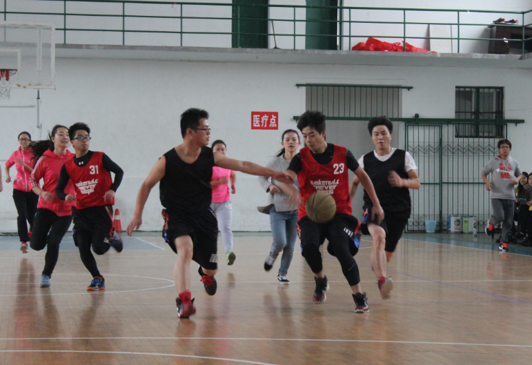 老师队出战的有王洁群书记、刘中望副院长、周骅副教授、周亚廷老师、汤友云老师和校友张雷等。平时温文儒雅的老师们在球场上,以矫健熟练的动作迅速传球,敏捷的运球,博得场下观众一阵阵喝彩。欢笑、掌声 伴随着比赛全程,老师与同学之间相互交流技术,其乐融融。