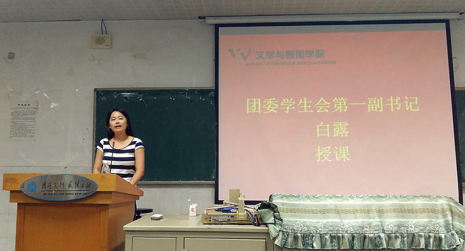 组织部承办,由团委学生第一副书记白露授课,并由团委学生会组织部副部长王新娜讲解团的基本知识。本次课程贴近学生生活,从分享自身经历到展望大学未来,以及从团的基本内容到团课考试几个方面授课。