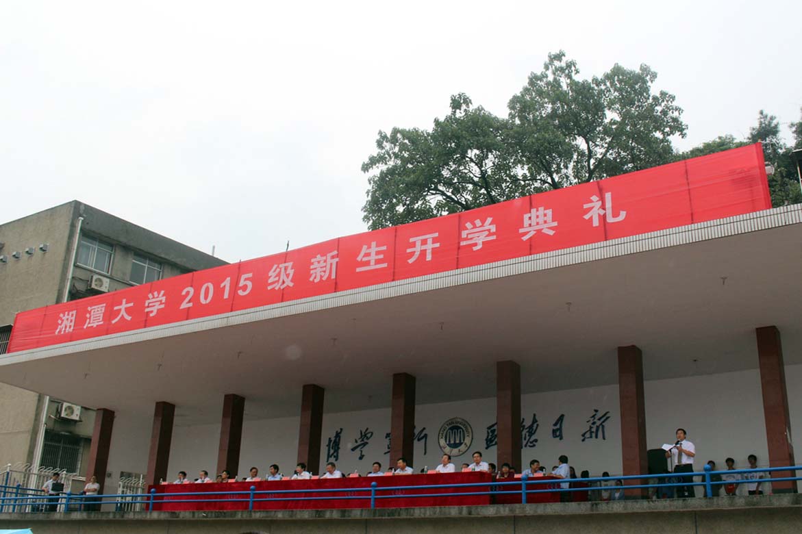 首先进行了升国旗奏国歌仪式,接着是校长黄云清讲话。黄云清首先对2015级新生表示了欢迎,接着,说出了对新生的三句话。第一句,“作为新一代的湘大人,湘大欢迎你们!”。黄云清从校园暑期改造、校领导亲自给贫困地区新生送通知书、老师积极备课以及学长学姐热心迎新这四个方面表达了学校对新生的欢迎。第二句,“作为学校最年轻的小鲜肉,湘大宝贝你们!”。黄校长列举了我校的优秀教学资源以及师德高尚的名师典范,又介绍了学校里的信息化系统。学习上的良好氛围以及生活上的舒适体验体现对学生的重视。第三句,“作为祖国的未来之星,湘大成就你们!”。黄云清列举几个51大赛