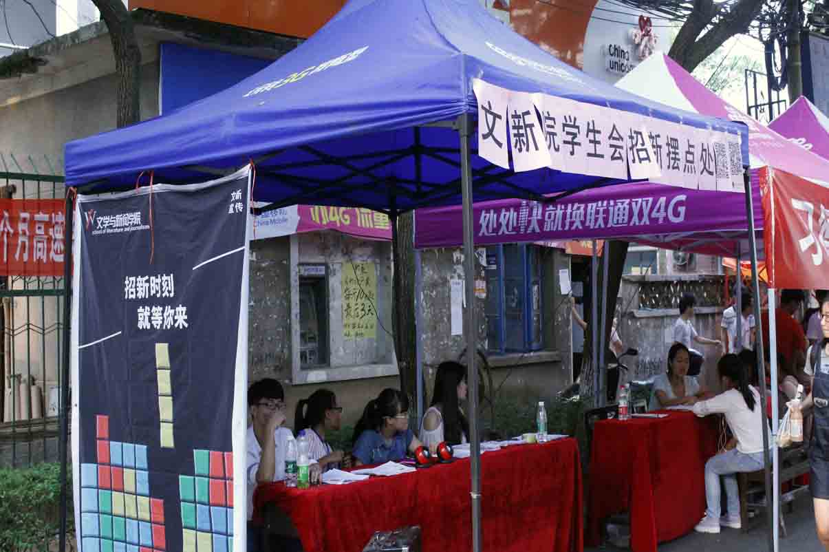 学生会进行了对新生的招新工作。学生会主席团成员和各部部长们在19:30全体来到了51大赛