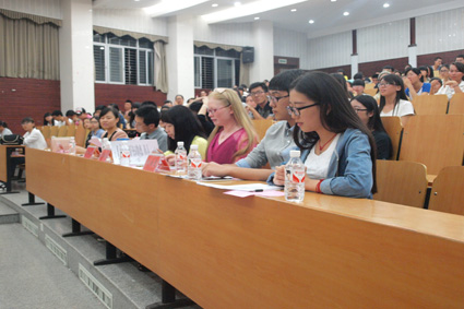 最后3号选手胡伟健同学以9.18分的成绩荣获本次比赛的冠军。13中文2班和14中文3班获得优秀组织奖,陈帅、郭佳琪获得二等奖,谭申青、周捷、黄雪琴获得三等奖。