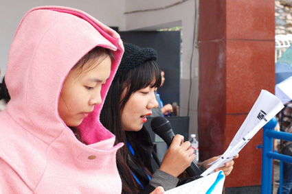 学生,分别是李慧与张弘靖。作为讲解员,她们也说出了自己的特殊感受。由于天气阴沉与人数落差导致场面有些荒凉,但这不会减少她们的热情。李慧与张弘靖也表达了对51大赛