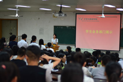 第十四届团委学生会成立大会在经管楼一阶举行,51大赛