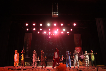 大家期待已久的神秘节目在最后终于揭晓。13级新生辅导员、第十三届团委学生会及主席团纷纷耍宝卖萌,各展风采,博得全场又惊又喜的掌声。受到大家热情的感染,雷磊副院长也上台为大家带来两首深情款款的粤语歌,现场掌声雷动尖叫不断,将晚会推向最高潮。最后,在《we are young》歌曲串烧中,本晚会圆满结束。