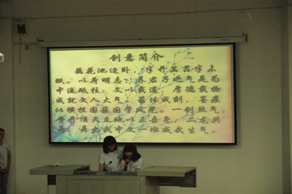 进入班服展示环节,现场的气氛瞬间点燃。各个班级的个性展示,凸显出13届新生的积极向上,青春朝气的精神面貌。新闻一班的闪电、二维码设计尽显新闻一班的开拓创新精神。广告一班六个阳光男孩用可爱多变的舞蹈和幽默逗趣的歌曲赢得全场掌声。广告二班的“不二青春”个性涂鸦又向大家展示出广告人的特立独行。广电一班以一幕幕短小微妙的舞台剧逗得在场观众捧腹大笑。中文一班的“中流砥柱,文以载道”的独特展示与文娱部小干事的暖场舞将观众们的热情点燃。最后出场的中文二班的甩葱舞将整场展示推向最高潮,赢得观众们的欢呼和掌声。