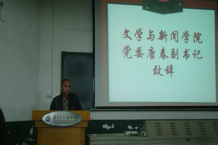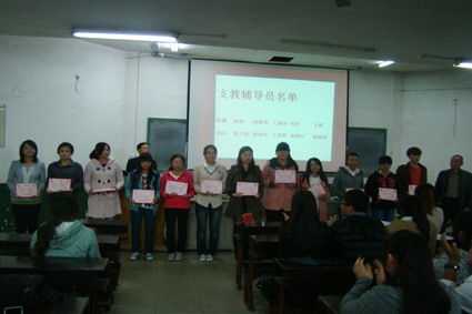在大会上,唐书记为“朝阳记”义务支教活动辅导员颁发聘书,另有26名同学获得2013年优秀迎新志愿者。随后优秀迎新志愿者代表杨海同学发表演讲,他分享了自己在迎新志愿活动中的经历与感触。而后,51大赛