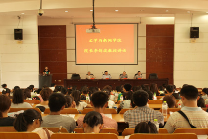 汉语言文学专业、广告学专业、新闻学专业、广播电视新闻学专业的具体情况以及就业前景。王教授还提到,大学的教学方式不同于中学,希望新生们可以尽快适应新的教学方式,培养独立学习的能力,利用好没有课的自由学习时间,提高自己的综合素质。