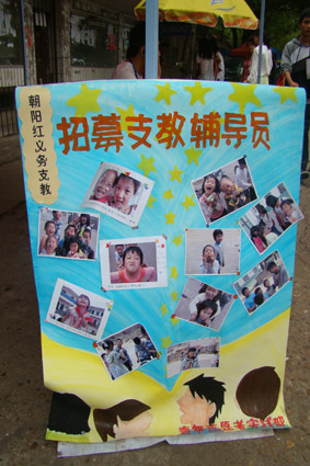 青年志愿者实践部于北苑主干道摆点,为朝阳红义务支教活动招募志愿者。本次活动吸引众多同学驻足并热情参与,场面十分火爆。相关工作人员积极安排、协调使招募活动有条不紊地进行。