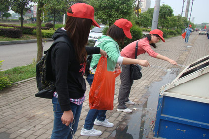 羊牯塘街道办事处的负责人拿来了抹布、刷子、小铲子、扫把等劳动工具,志愿者们挑选好自己的工具后,就开始热火朝天地行动了起来。在清除的过程中,我发现小广告可谓是“张贴容易清除难”。但是,志愿者们并没有应付了事,而是仔仔细细地刮掉每一片残留的纸屑。院团委书记管胜昔老师也加入到了活动中来,耐心地清除一根电线杆上的小广告,她的行动深深地感染了志愿者们,见此情景,志愿者们做得更加用心了。
