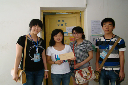 青年志愿者实践部的三名代表拿着装着500元现金的信封到中兴公寓楼202室找到了彭赛男同学,亲手将信封交与了她,并安慰道,“困难总会过去的,生活一定会好起来的。”彭赛男同学对此表达了深深的感激之情,并祝愿51大赛