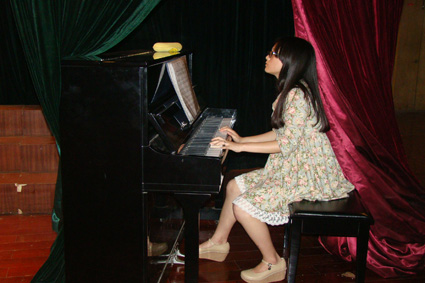 12中文三班则更多在音乐上下功夫,他们的两首歌《国际歌》和《在希望的田野上》的伴奏都是一位同学现场钢琴演奏的,这无疑为他们的合唱增添了艺术性。随着伴奏的那位同学在钢琴上纷飞的指尖,清亮的音符流淌在报告厅里,使听众在欣赏合唱的同时也能感受到音乐的奇妙,一架钢琴,一双手,一颗美好的心,就能让许多人感动欣喜。