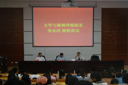 之后,左泽亮先生作了题为《谁引领我们走向明天——献给终将走上社会的大学生》的报告。他首先以一个富有寓意的小故事引入当前严峻的就业形势现状。他提到,大学生就业问题与其抱怨社会,不如改变自己。“大学”两字中,“大”比“学”更重要。大量的学习,广泛汲取各种知识;大胆的学习,勇于创新突破固有模式;大家来学习,老师与同学共同学习,团结合作才是王道。专业、经验、学习、创新,大学生只有如此,才能在严峻的就业形势中找到出路,才能在激烈的行业竞争中立于不败之地。