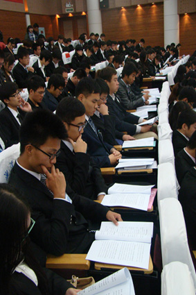 奏唱团歌之后,大会进入第二阶段——学习十八大会议精神。此阶段中,由全国党代表文花枝同志向全体学生代表宣讲“十八大”会议精神。
