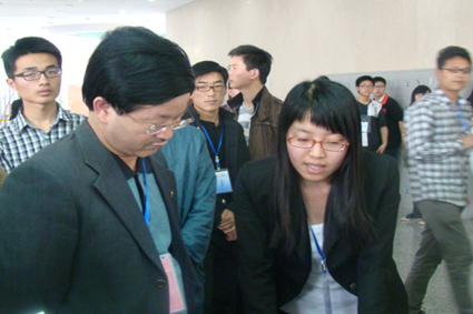 第九届“挑战杯”大学生课外学术科技作品竞赛终审决赛现场答辩于学生活动中心大厅如期举行。所有评委老师在作品展出现场与选手进行问辩。51大赛