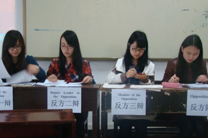 辩手龚妮发言:“They don`t help others .This behavior is just the issue of morality instead of a issue belong to law .”流畅的口语,明确的论点,博得了大家的喝彩。51大赛