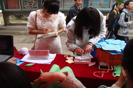 学生的积极响应。摆点处从早上开始就十分火热,“好活动就是它,它就是辩论赛,你有让自己两难的问题吗?参与我们的辩题征集吧!”风趣的宣传语吸引着往来路人的目光,很多同学驻足停留,积极参与,或是写下辩题,或是留下寄语,或是预测冠军。