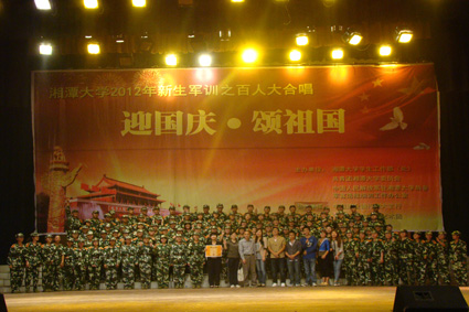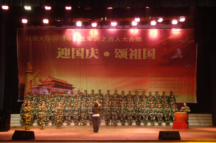 2012年新生军训之“迎国庆•颂祖国”百人大合唱活动在我校俱乐部隆重举行。经过两个半小时的激烈比拼,我院凭借一首热情欢快的《太阳出来喜洋洋》,以绝对优势稳居榜首,摘得头名。