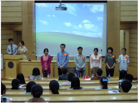 5月15日晚7点,2012“晨曦杯”研究生英语口语大赛在图书馆报告厅精彩上演。经过初赛的激烈角逐,共有来自近十个学院的14名选手再次决一高下。外国语学院以舒奇志教授为代表的三位老师当任了此次比赛的评委。