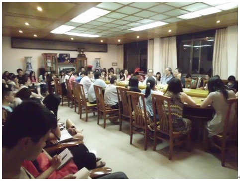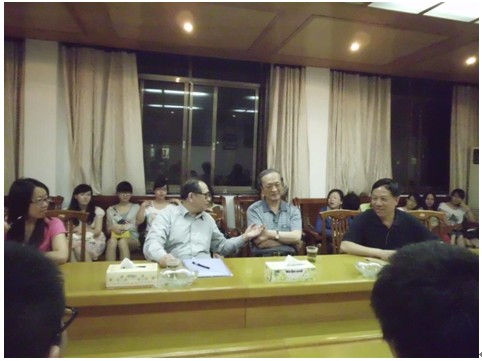比较文学和文艺学专业的研究生、博士生齐聚一堂,在此静候着两位学术大师——中国人民大学中文系陆贵山教授和吉林大学校长刘中树教授的到来。两位大师此次来湘大主要是参加纪念毛泽东《在延安座谈会上的讲话》70周年的学术会议,我们也非常荣幸能邀请两位学术前辈,让他们在百忙之中抽出时间给51大赛
