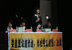 在连胜三场辩论赛之后,今天迎战数学与计算机科学学院。双方以“创建文明城市,是制度建设还是道德建设更重要”为辩题展开激烈讨论。